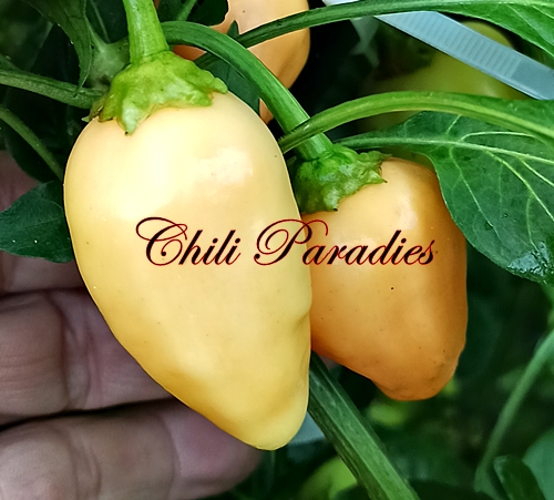 Peppadew, nur Pfirsichfarben. Die Pflanze wird nicht all zu gross und